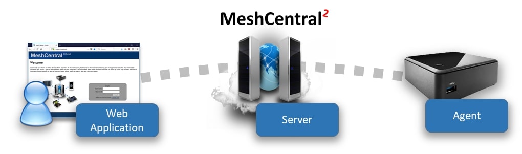 In this section, we do a very high level overview of MeshCentralās design. MeshCentral has 3 big components :