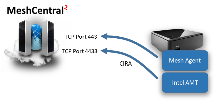CIRA is great when remotely managing Intel AMT devices over the Internet through network address translator (NAT) routers where the server would not be able to connect to Intel AMT. This is similar to the Mesh Agent that initiated and keeps an idle connection to the server.