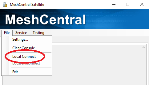 Once done, select Local Connect the Files menu to connect to the MeshCentral server.