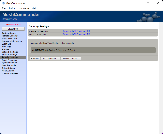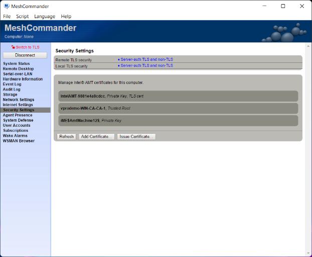 - Issue a certificate for Intel AMT.